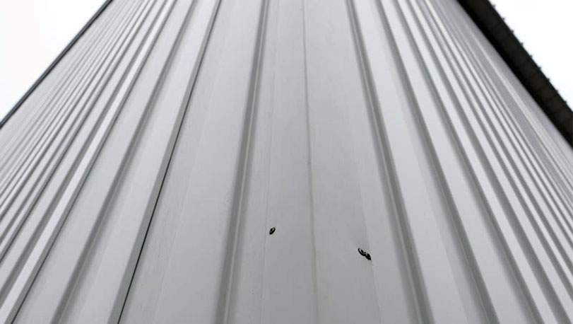 ,顏色為美深藍,牌號為TS300GD+AZ,鋁鋅重量為150克/平方米。該工程為美聯(lián)鋼構(gòu)建設(shè)。