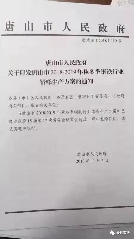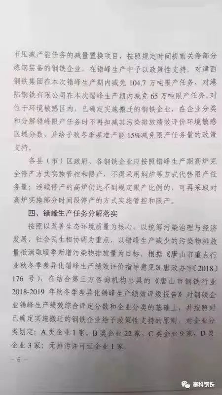 日前,唐山市2018-2019年秋冬季鋼鐵行業(yè)錯(cuò)峰生產(chǎn)方案經(jīng)過市政府15屆17次常務(wù)會(huì)議審議通過,主要內(nèi)容為:分類執(zhí)行,對(duì)提前關(guān)停部分煉鋼設(shè)備的津西鋼鐵和港陸鋼鐵將分別減免104.7萬噸、65萬噸限產(chǎn)任務(wù)。