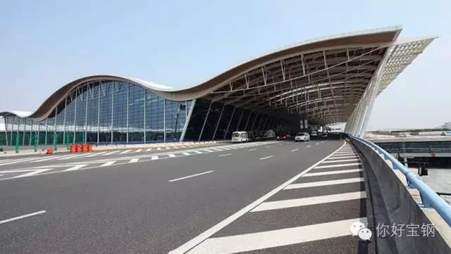 我跟浦東機(jī)場(chǎng)二期航站樓是在2006年認(rèn)識(shí)的。每次出遠(yuǎn)門的時(shí)候,都會(huì)看見這位老友。星月白的顏色,大鵬展翅的造型,寓意著上海的騰飛。而當(dāng)初為了滿足它最長(zhǎng)單跨140米的要求,寶鋼特別研制了新的鋼種S250,保證了材料的一次性連續(xù)性成型。