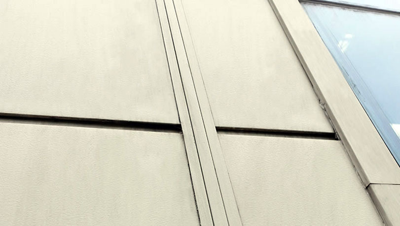 2010年建設(shè),屋面和墻面采用多種材料,有鍍鋁鋅光板、氟碳彩涂板、聚酯彩涂板。其中,外墻板采用鍍鋁鋅氟碳壓花彩板,顏色象牙色、除能帶來美觀效果外,還能提高強(qiáng)度,牌號為TDC51D+AZ,鋁鋅層重量150克/平方米。