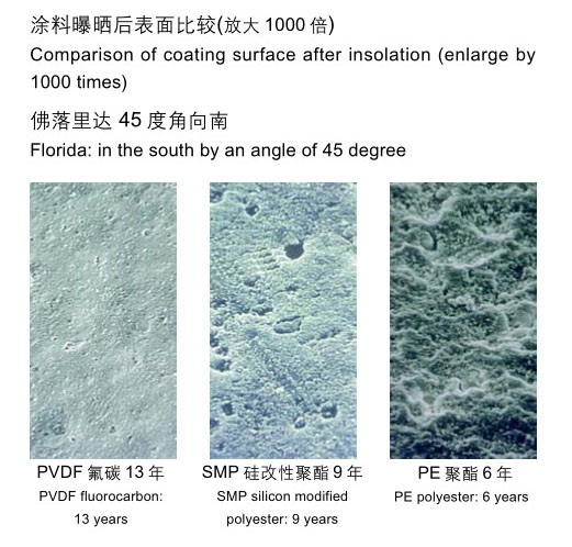 寶鋼提供的硅改性聚酯彩涂產(chǎn)品(SMP)和高耐候聚酯彩涂產(chǎn)品(HDP)均是較普通聚酯彩涂產(chǎn)品耐候性更優(yōu)的鋼板。寶鋼對(duì)高耐候聚酯彩涂鋼板提供15年的質(zhì)量保證。