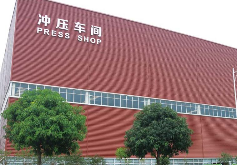 2014年柳州五菱汽車地處廣西柳州市該項(xiàng)目建設(shè)采用寶鋼鍍鋁鋅高耐候彩涂鋼板,顏色為楓葉紅,牌號(hào)為TDC51D+AZ,鍍鋁鋅量為150克/平方米。